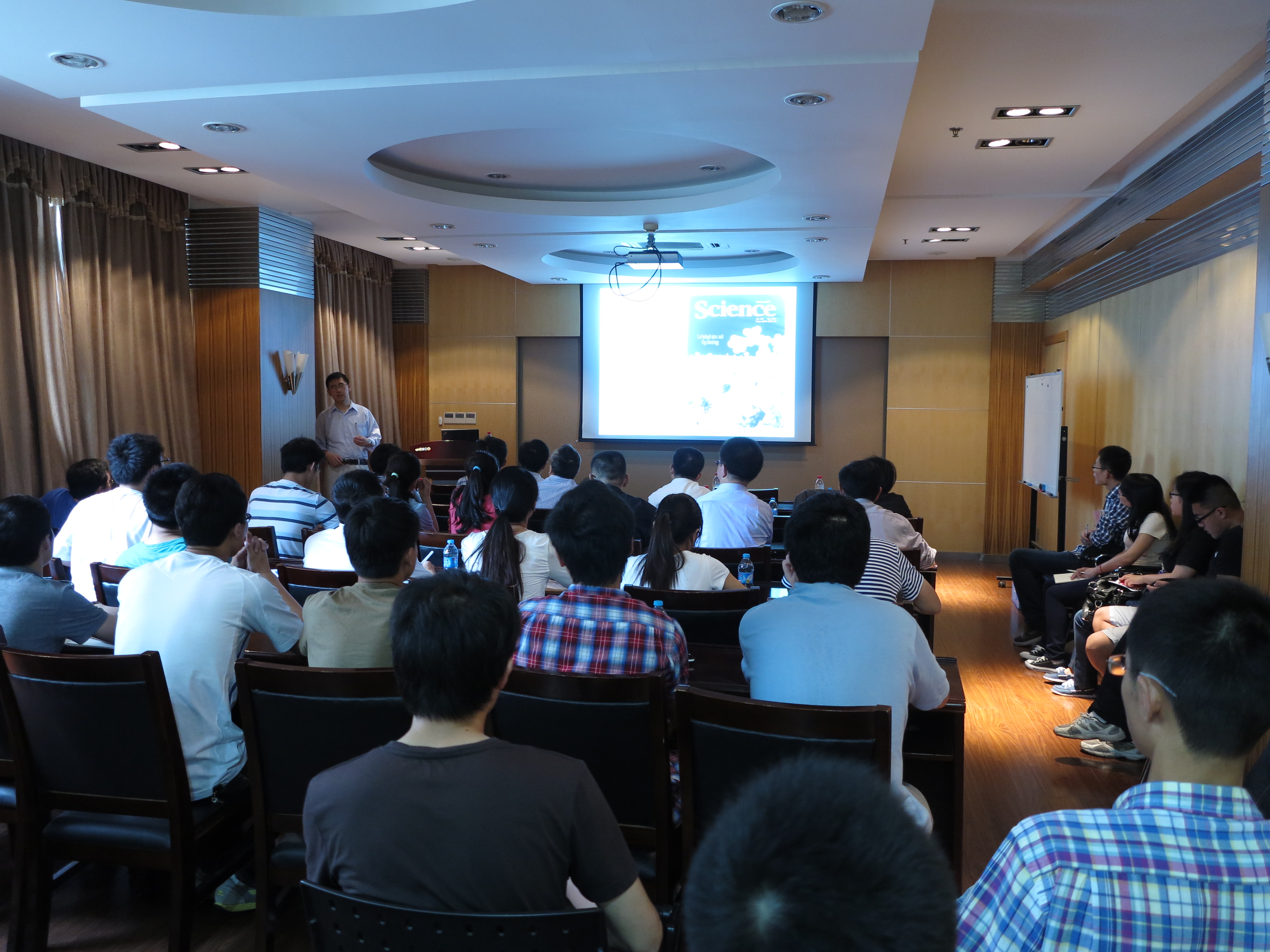 ,钱旭红校长与Binghe Wang教授就肿瘤细胞的分子识别、荧光和质谱探针进行了深入探讨和交流。随后,Binghe Wang教授以“Looking for the “Sweet Spot” and pharmacological targets for disease”为题, 就糖生物化学前沿领域,肿瘤细胞表面特征多糖标识物的分子识别及荧光和质谱探针的设计原理并应用于肿瘤诊断做了精彩和风趣的学术报告,钱校长和与会的师生纷纷提问与Binghe Wang教授进行现场互动。报告会由免费色情影片