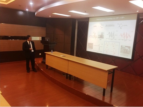 作题为“Radical C-H Activation, Radical/Radical Cross-Coupling的名师讲坛学术报告。本场报告会由邓卫平教授主持。