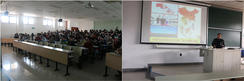 首先,杨老师将“十三五”规划与在座大学生的个人发展紧密结合,指出个人的专业发展只有与国家整体规划相结合,才能实现每个人的大学梦、成才梦和中国梦;其次,杨老师从政治、经济、文化和制度等方面,为同学们讲解了“十三五”规划的重点工程“一带一路”,通过“打乒乓”等比喻形象的说明了占有规则主导权的重要性;最后,杨老师为同学们讲述了“一带一路”的提出背景、发展规划和整体的战略布局,同学们在享受了丰富的知识和思想盛宴的同时,收获了满满的正能量,激发了在座同学们的爱国热情,从而更加坚定了为实现中华民族伟大复兴的信心和决心。