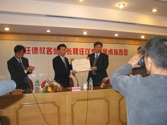 中药现代化工程中心成立,时任校党委书记沈伟国为任德权颁发了中心名誉主任聘书。他希望该中心成为汇聚相关学科、资源的中心,成为研究开发的中心。在中心实际运转期间,任先生多次与中心的老师座谈,为中心的发展献计献策。