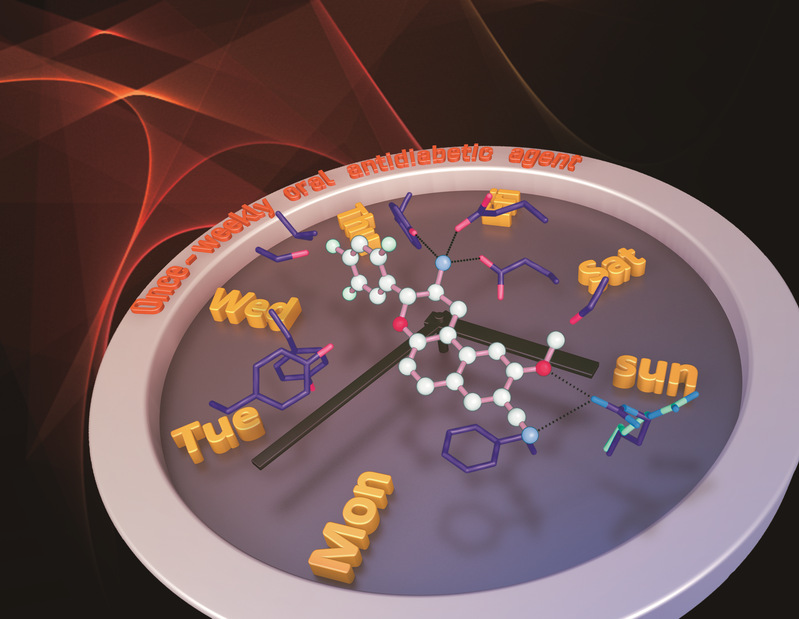 来源于天然产物——异瑞香新素,研究团队用计算机靶标预测其作用靶点、实验确证并通过计算机辅助药物精准靶向设计,开发成为强效、高选择性、可逆混合型的长效小分子DPP-4抑制剂。该药一周给药一次即可降低自发性2型糖尿病db/db小鼠空腹血糖和糖化血红蛋白水平,改善口服葡萄糖耐量,促进糖刺激的血清胰岛素分泌。本品的临床试验获批为2型糖尿病患者提供了安全有效依从性高的潜在治疗选择。