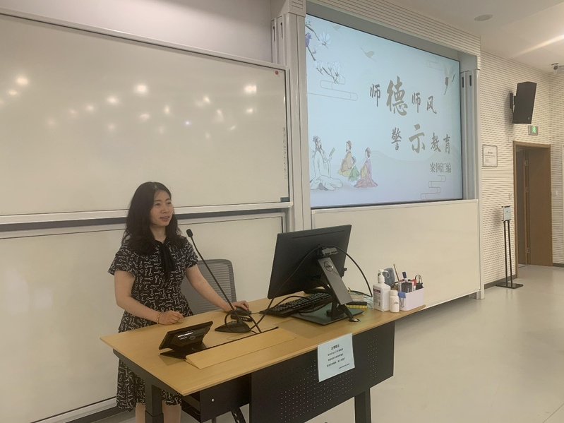 专题报告会之前,陈莉丽首先进行师德师风警示教育,以教育部公开曝光的违反教师职业行为十项准则典型案例和学校查处的严重师德违规问题为反面教材,引导全体教职工以案为鉴、以案明纪,做到警钟长鸣,并深刻认识加强师德师风建设的重要意义。