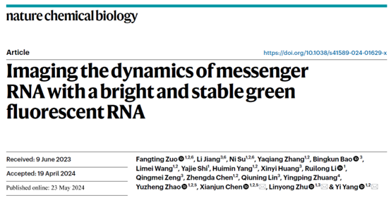 近日,免费色情影片 免费色情影片 、生物反应器工程国家重点实验室、光遗传学与合成生物学交叉学科研究中心杨弋、朱麟勇、陈显军教授组成的研究团队在活细胞RNA成像技术研究中取得突破性进展,在国际著名学术期刊《自然—化学生物学》(Nature Chemical Biology)以长篇论文(article)形式在线发表题为“Imaging the dynamics of messenger RNA with a bright and stable green fluorescent RNA”的研究论文。