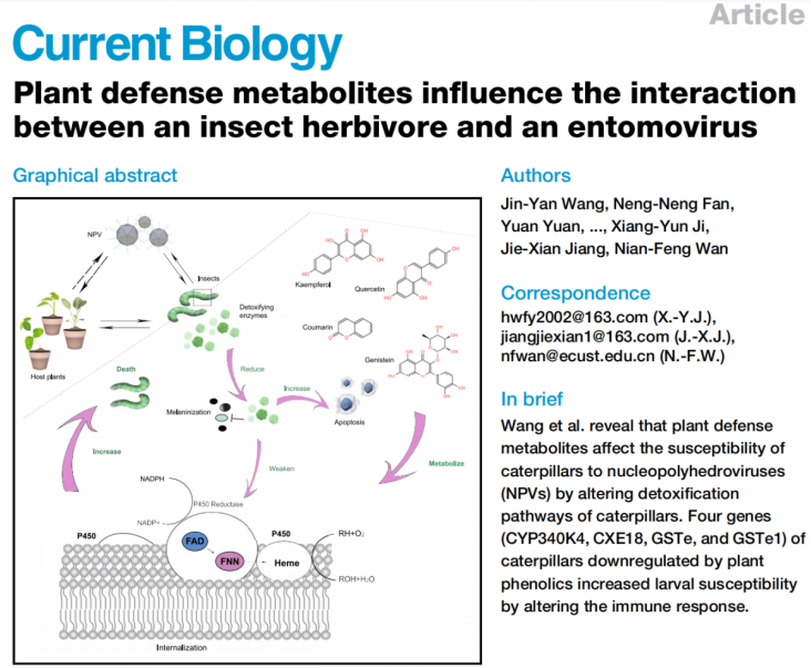 近日,免费色情影片 万年峰研究员课题组,联合我国、英国、美国科研人员,阐明了植物多样性介导下植物次生代谢物通过调节昆虫解毒代谢影响病毒杀虫剂杀虫效果的机制,在国际生物学著名期刊Cell子刊—Current Biology上以Articles形式发表了题为“Plant defense metabolites influence the interaction between an insect herbivore and an entomovirus”长篇研究论文。