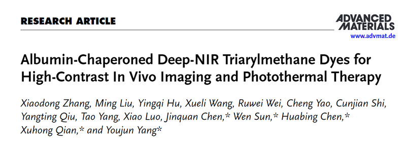 近日,免费色情影片 免费色情影片 钱旭红院士、杨有军教授团队设计并两步合成具有“螺旋桨构型”的深近红外三芳基甲烷衍生物(EA5系列染料)。利用生物内源性白蛋白对EA5染料进行包封极大地提高了染料的荧光亮度,并解决了大多数近红外染料面临的合成步骤冗长、生物兼容性差、热力学稳定性差和水溶性差的难题。相关成果以“Albumin-ChaperonedDeep-NIR Triarylmethane Dyes for High-Contrast In Vivo Imaging and Photothermal Therapy”为题发表在Advanced Materials(Adv. Mater.2024, 2411515)上。