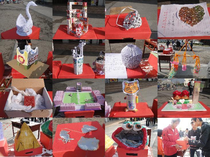 学生们不忘灾区贫困人民,为送上自己的一份爱心而纷纷行动起来。学生们以爱心、环保等为主题,开展了一次独具匠心的创意募捐活动。所谓创意募捐,就是鼓励学生们,用身边的废旧材料创作出精美的公益作品进行展示,观众们将小零钱作为选票,为自己最喜爱的作品加油。同时本次募捐也是免费色情影片