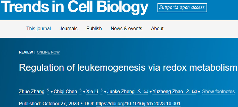10月27日,我校药学院、生物反应器工程国家重点实验室、上海市细胞代谢光遗传学技术前沿科学研究基地赵玉政教授与上海交通大学医学院郑俊克研究员合作在国际权威学术期刊Trends in Cell Biology 发表题为“Regulation of leukemogenesis via redox metabolism”的综述文章,对氧化还原代谢调控白血病发生发展的病理机制以及目前存在的关键问题进行了全面的梳理、总结和展望。
