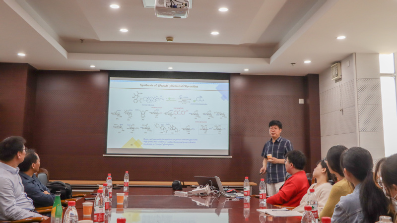 杨友对刘学伟和曹鸿志的到来表示衷心感谢!他指出,刘学伟和曹鸿志是糖科学领域的国际知名教授,分别在糖的化学合成和酶法合成中取得突出成果,他们的报告让学院师生了解了糖的化学和酶法合成方法及其在抗菌药物等领域的前沿应用,同时他表达了随着“破译生命的糖质密码”重大研究计划的发布,糖科学研究即将迎来一个灿烂的明天。
