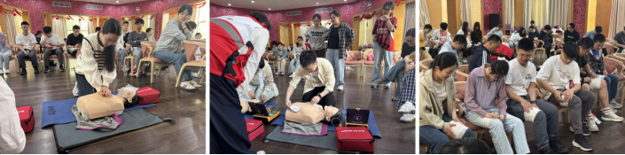 本次培训内容涵盖心肺复苏(CPR)、自动体外除颤器(AED)使用、气道异物梗阻处理、创伤止血包扎等急救核心技术。在模拟急救场景中,学员们分组进行胸外按压、人工呼吸、急救包扎等实操训练,培训讲师逐一指导动作规范,确保急救技能科学精准。学员们在反复纠错与强化练习中,逐渐将理论转化为肌肉记忆,掌握“黄金四分钟”急救要领。