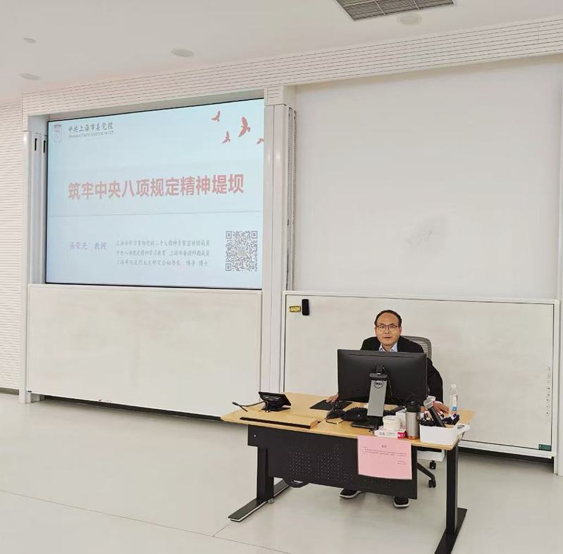 4月21日,药学院、体育学院邀请中共上海市委党校教授、上海市学习贯彻党的二十大精神专家宣讲团成员、深入贯彻中央八项规定精神学习教育上海市委讲师团成员、上海市马克思主义研究会秘书长汤荣光作题为《筑牢中央八项规定精神堤坝》的专题报告。学院全体教职工参加会议,会议由药学院党委书记倪炜主持,药学院、体育学院党政班子成员,教师党员共同参加学习。